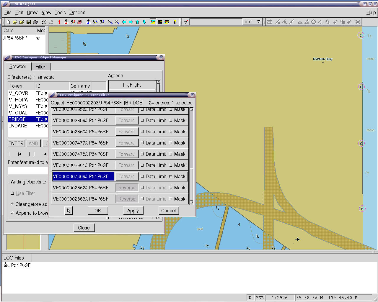 これまでの説明で、航海用電子海図のデータ構造と、これを表現するプレゼンテーションライブラリーの仕掛けがわかったでしょうか。 簡単に言えば、オブジェクトのコードとその属性コードによってシンボルが決定され、プレゼンテーションライブラリーのルールによってシンボルが決定し、 プレゼンテーションライブラリーのシンボルがプレゼンテーションライブラリーで定義された色で画面に表示されます。 この中で、非常に凝った仕掛けがあります。これがマスクとデータリミットです。さて、プレゼンテーションライブラリーの中で、面の塗りつぶしタイプのものを見てみましょう。 ![]() この例は、面タイプの港湾区域です。周囲に CHGRD で枠を描きます。しかし、周囲の枠を描く時に、ある部分は、枠を描きたくない時があります。これを制御する機構がマスクと呼ばれるものです。 フォーマット上では、下に示した場所にマスクをセットします。 ![]() 具体的なマスクの効果を見てみましょう。下に示した例は、BRIDGE(橋)のマスクの例です。ここでは、マスクはセットされていません。 ![]() (画像をクリックすると、1280 x 1024 ピクセルの画像が見れます) 赤丸で囲んだ場所で、橋が切れているわけではありませんよね。本当だったら、赤丸で囲んだ場所の橋の縁取りは、無い方がきれいに見えます。この場所にマスクをかけてみたのが、下の画面です。 ![]() (画像をクリックすると、1280 x 1024 ピクセルの画像が見れます) どうでしょう?マスクをセットしてあげた方が、地図らしく見えませんか?丁寧にマスクしてあげれば、きれいになる個所があります。 日本の航海用電子海図には、一切マスクが入っていません。ところが、データリミットの方は深刻です。 データリミットの元来の意味は、セルの境界において、面が切断されているときにデータリミットをセットする事が、S-57 に規定されています。面が隣のセルに接続しない場合は、データリミットをセットしません。フォーマット上は、以下に示す位置に’C'が入ります。通常は、面の外側(Exterior)、または、内側(Interior)を示す場所です。 ![]() 下の図を見ると、赤丸で囲んだ不自然な縦線が入っている事に気が付きます。この縦線、港湾区域の境目なのですが、何故か、南北の直線になっています。しかも、直線は、丁度東経140度の位置にあります。実は、この縦線のある位置は、セルの境界で、データリミットがセットされていないために、縦線が現れてしまっています。 ![]() (画像をクリックすると、1280 x 1024 ピクセルの画像が見れます) 本当は、セルによって、港湾区域が切断されているので、データリミットを入れないといけません。下の画面は、データリミットを港湾区域に入れたものです。 ![]() (画像をクリックすると、1280 x 1024 ピクセルの画像が見れます) どうでしょうか?不自然な縦線は見えなくなりました。データリミットを入れなくても、安全航行上の問題になる事はないでしょうが、手抜きと言われても仕方ありません。 (注) 2006年4月現在、データリミットに関しては機械的に入っています。しかし、一部のオブジェクトに関しては、データリミットが入っていないため、画面上での不自然な線が見える場合があります。 会社情報 サイトご利用にあたって |